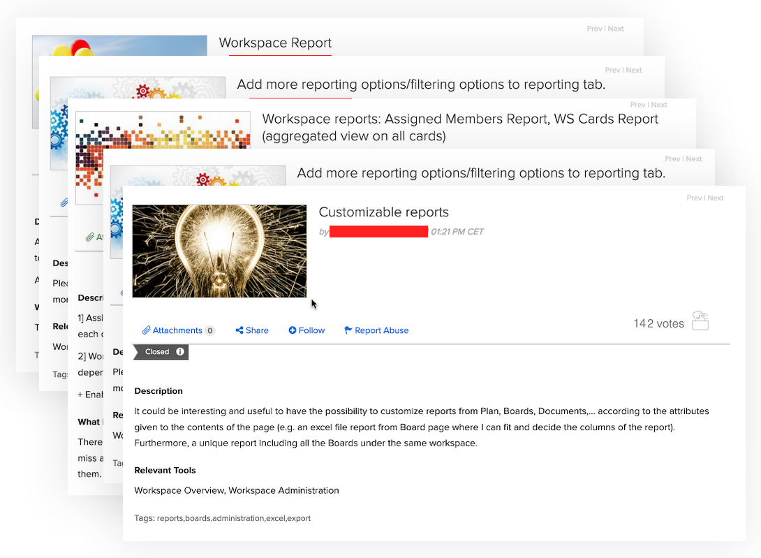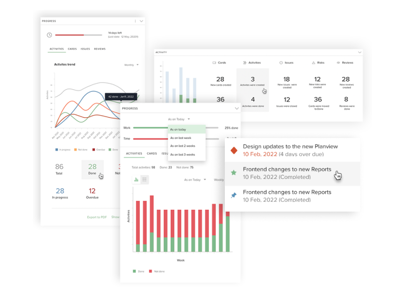 Workspace administrators can use workspace reports to monitor and share progress of their projects with internal and external stakeholders. Widgets on the Reports page are fully customizable, so users can control how reports look for specific workspace.