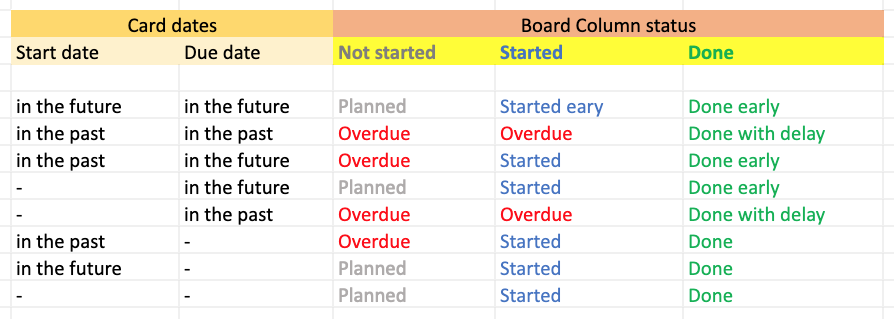 We have categorized all the widgets into 5 parts(Neutral, Progress, Overdue, Delayed and Deviated) as seen in the below mind map.